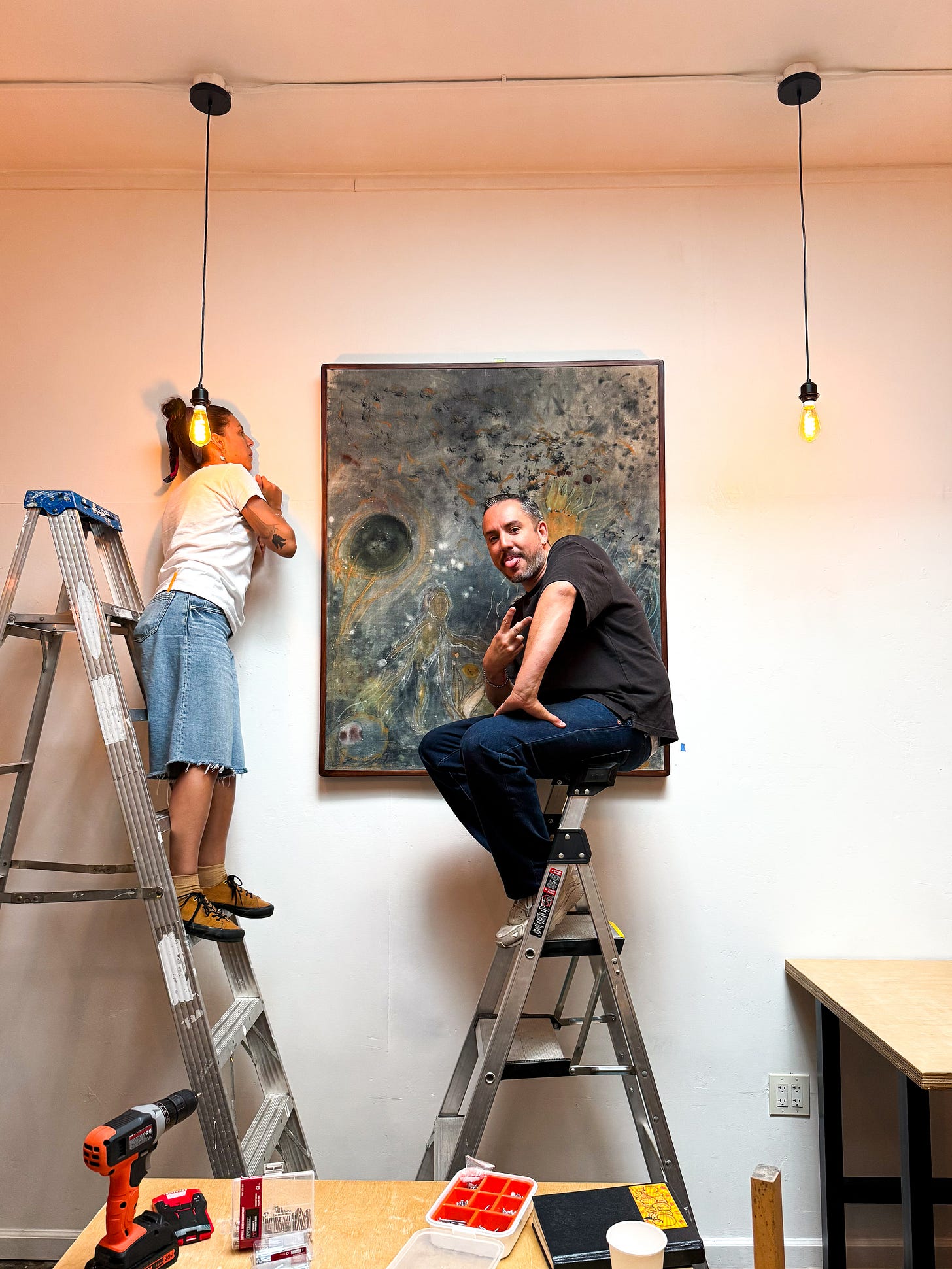 A big reason for the return of art shows to Lp, has been thanks to my homie Victor Sanchez. We linked up to revive what we both felt was once a core part of the shop’s identity and overall vibe. We missed having art on the walls—hosting artists and their friends, celebrating their work. It’s always been an honor. I first started talking with Victor about helping coordinate our art projects back in 2024, but things really started moving after a conversation we had at Brok Wood’s Opening Reception in March.
